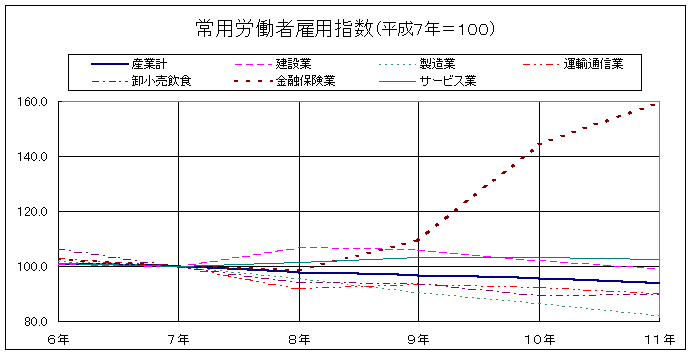 | 運輸通信業 | 102.9 | 100.0 | 92.0 | 93.3 | 92.2 | 90.3 |
