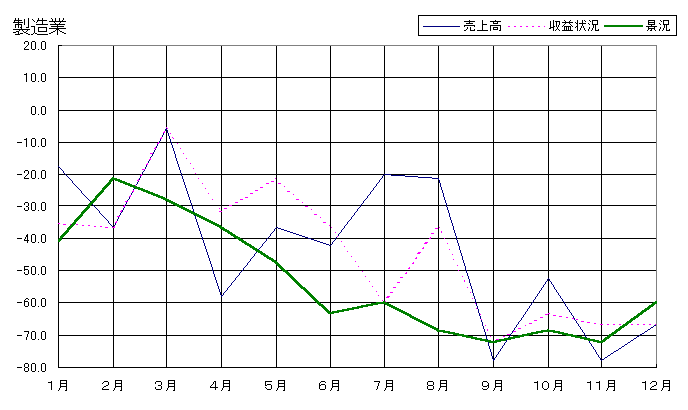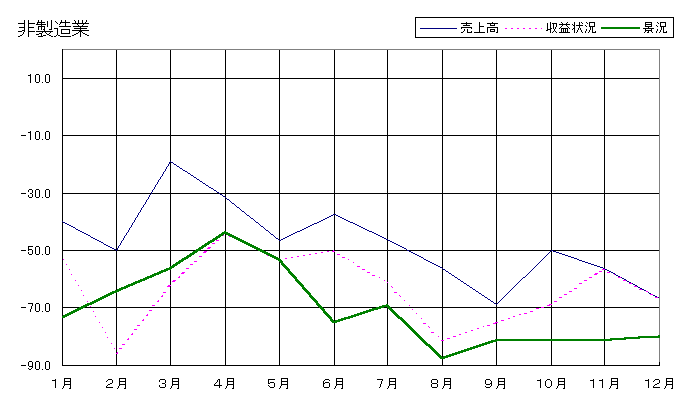 | 景況 | -73.3 | -64.3 | -56.3 | -43.8 | -53.3 | -75.0 | -69.2 | -87.5 | -81.3 | -81.3 | -81.3 | -80.0 |