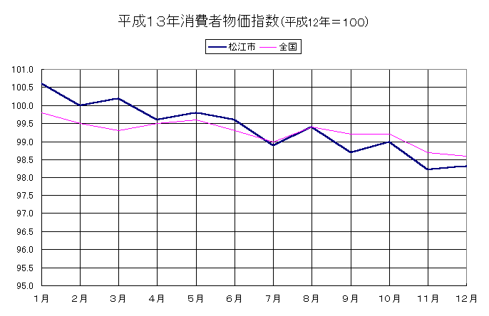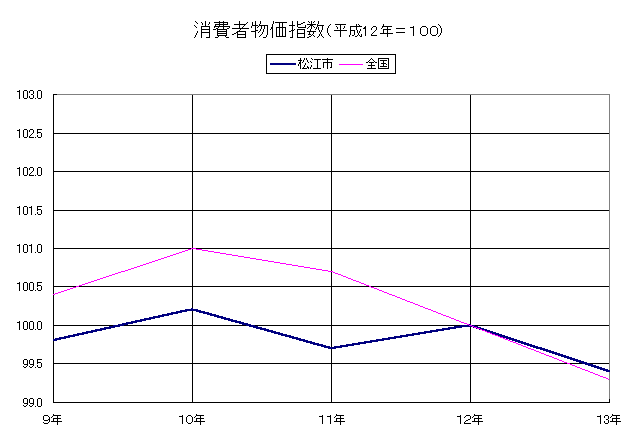 | 松江市 | 100.6 | 100.0 | 100.2 | 99.6 | 99.8 | 99.6 | 98.9 | 99.4 | 98.7 | 99.0 | 98.2 | 98.3 |