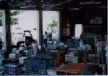 組合は、各組合員から自店に必要な商品をファックスで受け付け、本土の青果市場で仕入れる。仕入れに関しては、青果市場に常駐している組合の職員が、商品をよく吟味したうえでおこなう。そして、商品は組合の保有する11tトラックにより組合の倉庫に届けられる。貨物到着と同時に荷揃きがおこなわれ、組合員ごとに分別される.組合では、組合員が商品の引取りおこなう際に、注文商品の取消し、返品、あるいは商品の交換を可能としており、組合員の自由な活動を支援している.さらに、組合では大型の冷蔵庫と冷凍庫を設備し、主要商品の品切れ防止に努めている。一方、商品の仕入れは、地元農業者からも積極的におこなうなど、総合的な地域経済の発展の役割を担っている。 |